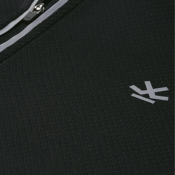 Black self-design T-shirt, has a mock collar, and long sleeves