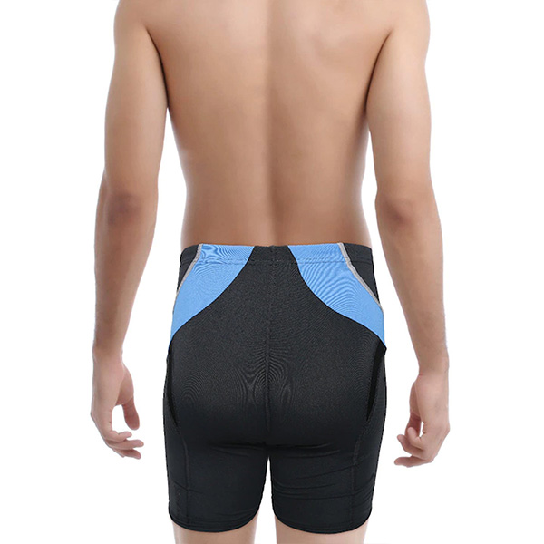 A pair of charcoal grey and blue mid-rise swimming trunks with Endurance+ technology for 100% chlorine resistance and fade resistance, has an elasticated waistband with a drawstring fastening, and stability seams for better body positioning.