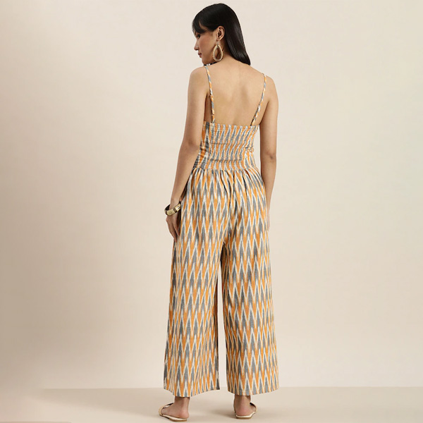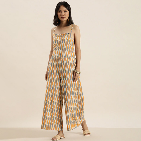 Women Mustard & Blue Ikat Printed Sleeveless Culotte Jumpsuit