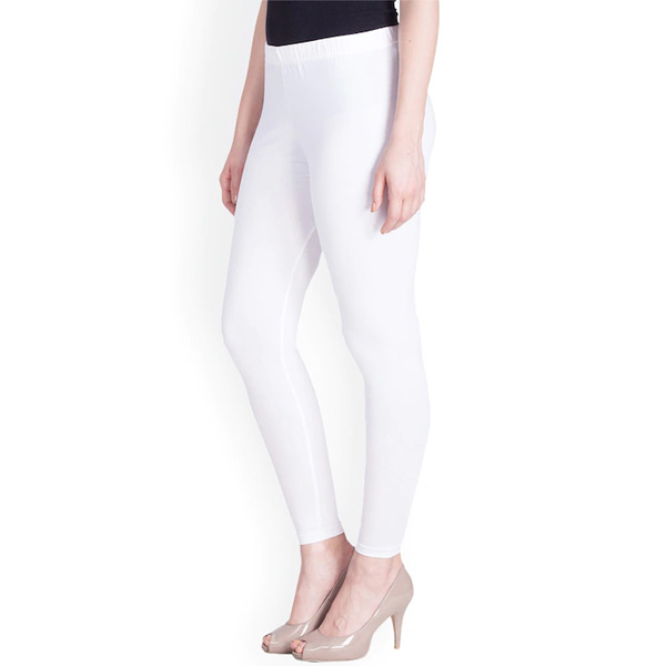 Women White Solid Ankle Length Leggings